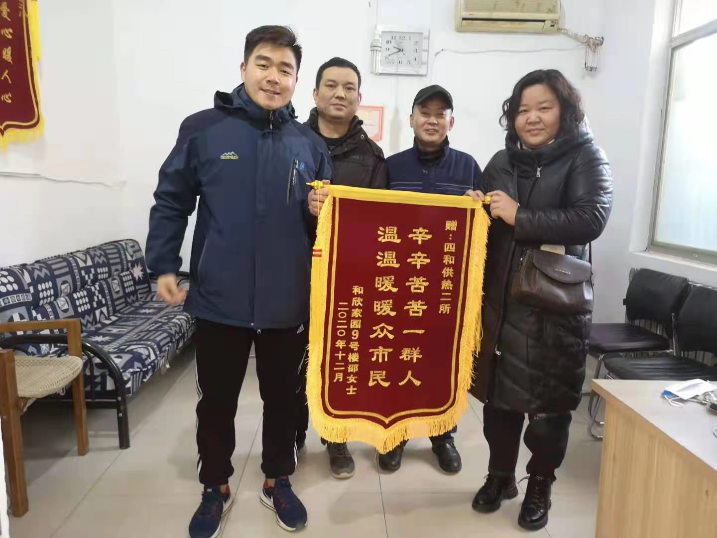 采暖季以來,水韻城、和欣家園、如意印染廠小區(qū)、胡營運(yùn)河宜居佳苑小區(qū)等多個(gè)小區(qū)的業(yè)主代表陸續(xù)將錦旗送到濟(jì)寧四和供熱有限公司,對該公司為小區(qū)供暖做出的貢獻(xiàn)表示感謝。